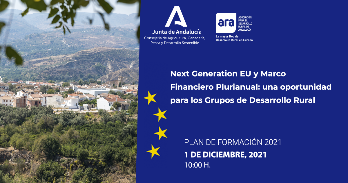 La Asociación para el Desarrollo Rural de Andalucía (ARA) organiza el próximo 1 de diciembre de 2021 el seminario web: “Next Generation EU y Marco Financiero Plurianual: una oportunidad para los Grupos de Desarrollo Rural” en horario de 10 a 12 horas.